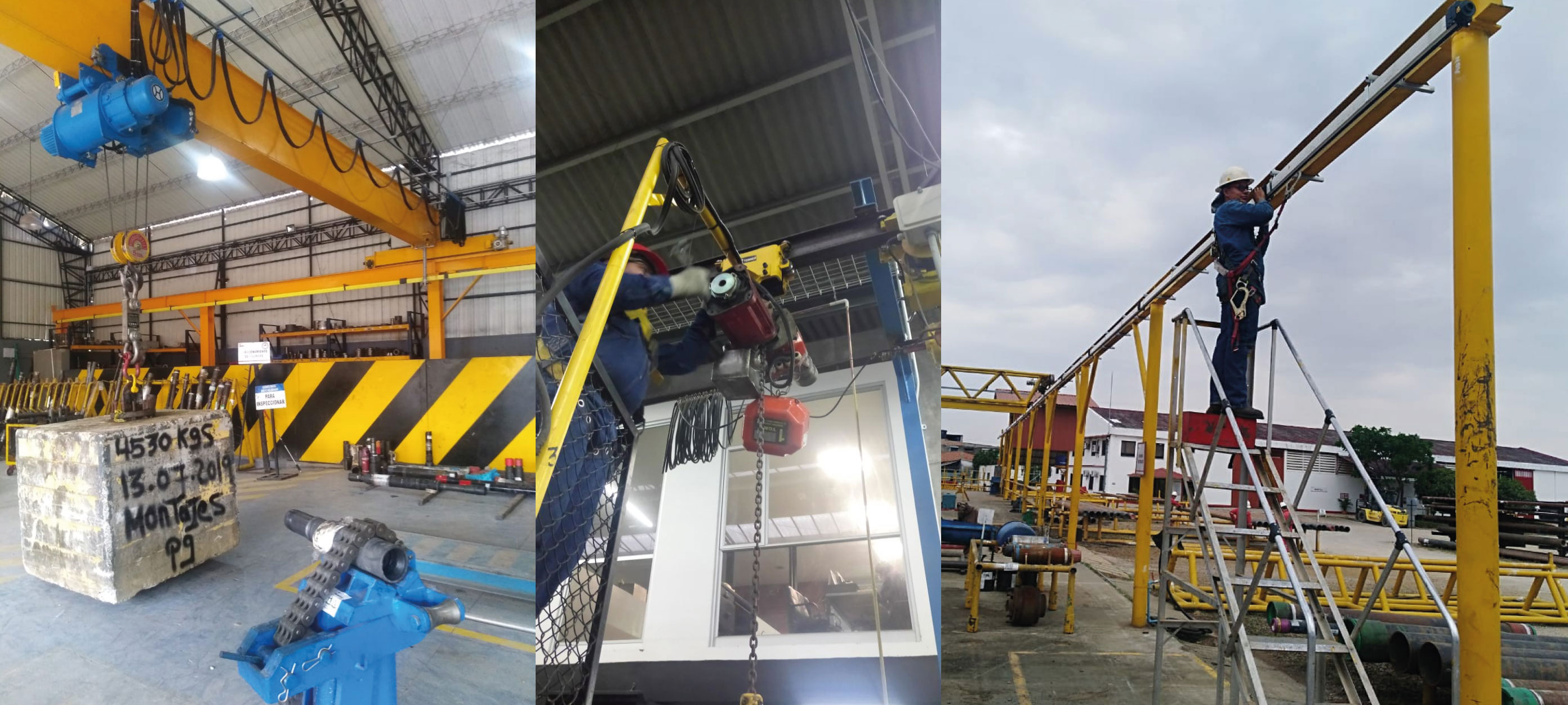 •  Mantenimiento puente grúas, mejoras para certificar y pruebas de carga.